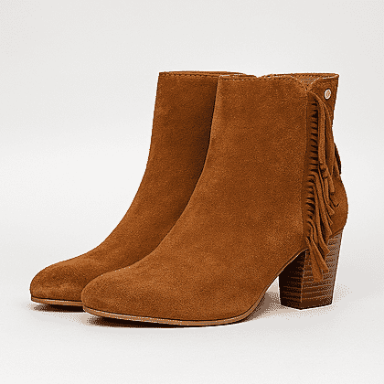 Step into the season with the Ravel Laxey heeled suede ankle boots, where comfort meets style. These boots boast a soft suede upper, an alluring almond pointed toe, and a 6cm wooden stack effect Cuban heel for the right lift. Designed with a practical outside zip and playful fringe detailing, they're the quintessential choice for pairing with a long maxi dress, ensuring a seamless trans-seasonal ensemble.