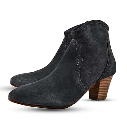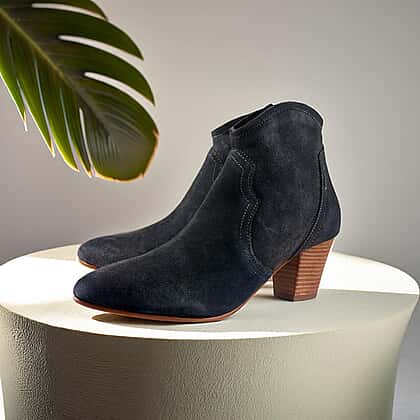 Stride into style with the Ravel Suede Teelin heeled ankle boots, where Wild West inspiration meets contemporary fashion. These boots are designed with a sleek suede upper, an almond pointed toe, and a comfortable 6cm wooden stack effect Cuban heel. The functional inside zip ensures easy to wear, while the classic hue complements any evening attire. Perfect for pairing with a wraparound dress, the Teelin boots are set to become a seasonal staple for the style-conscious.