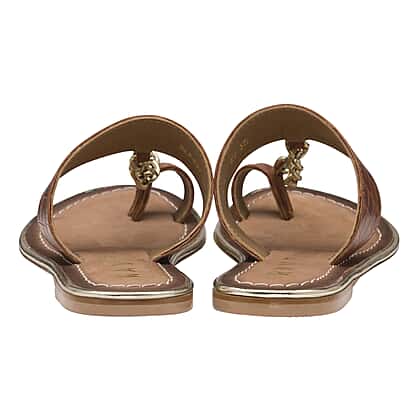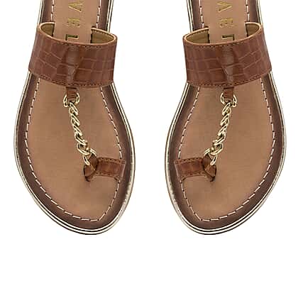 • ELEGANT DESIGN - The fine croc-pattern straps and toe loop connected by the gold-toned chain gives the sandals a regal look