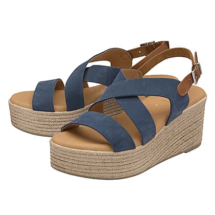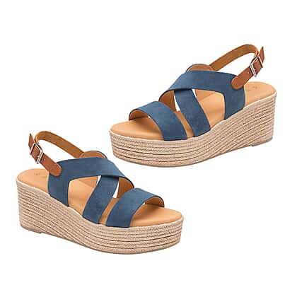 Ravel Wilga Suede Wedge Sandals in Navy (Size 3)