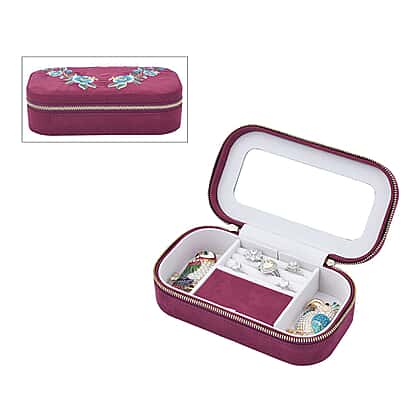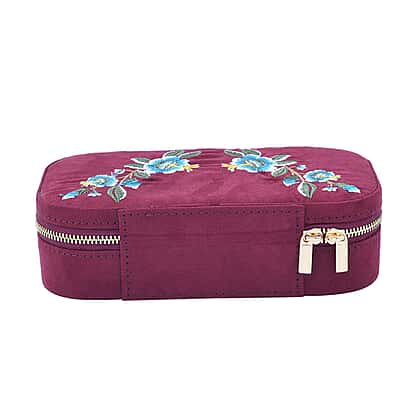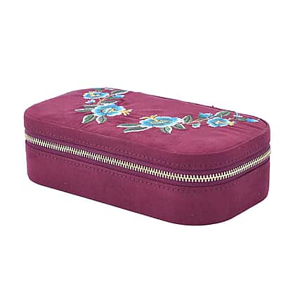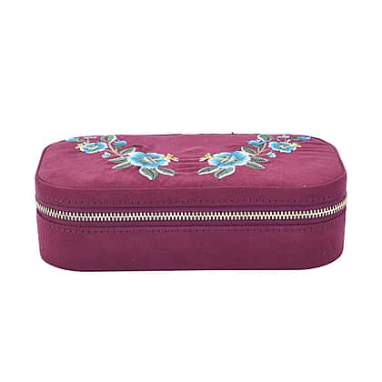Rectangle Embroidered Jewellery Box with Zip (Size 18x10x5 cm) - Burgundy