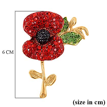 Red and Green Austrian Crystal Enameled Flower Brooch in Gold Tone