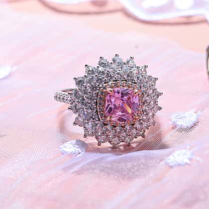Red Carpet Collection - Pink & White Cubic Zirconia Ring in Rhodium Overlay Sterling Silver