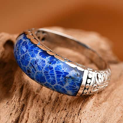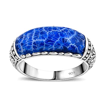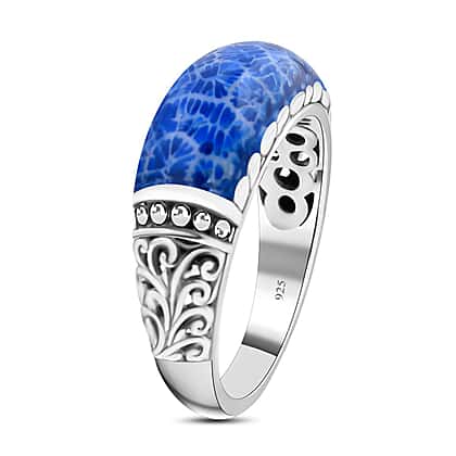 - Sterling silver ring set with a capturing blue coral