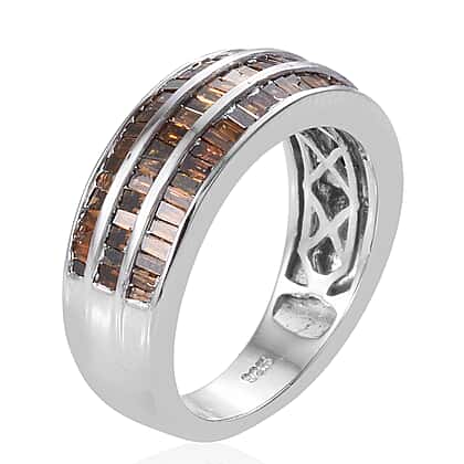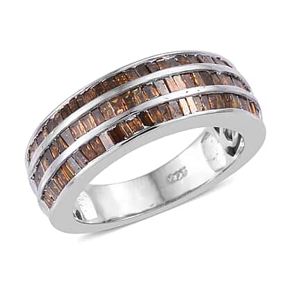 Red Diamond (Bgt) Band Ring in Platinum Overlay Sterling Silver 0.750 Ct.