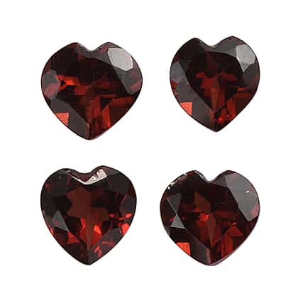 Set of 4 Red Garnet Loose Gemstones in Heart Shape (6.0mm)