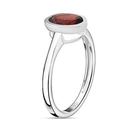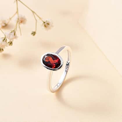 Red Garnet Solitaire Ring in Sterling Silver 1.440 Ct.