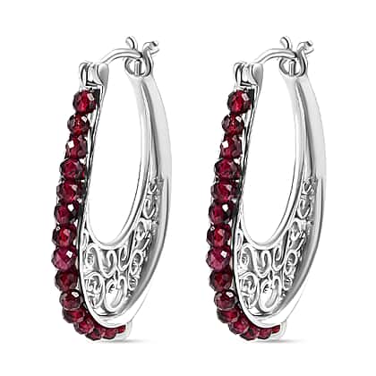 These red garnet vintage hoop earrings are designed just for you. Known for their deep red hue and robust durability (Mohs 7-7.5), garnets symbolise love and passion, making these earrings a meaningful gift or elegant addition to your collection. The vintage-inspired filigree detailing adds a timeless charm, while the rhodium-plated sterling silver ensures a tarnish-resistant and hypoallergenic finish, suitable for sensitive skin. The secure latch-back clasp provides comfort and reliability, making these earrings perfect for special occasions and everyday wear.