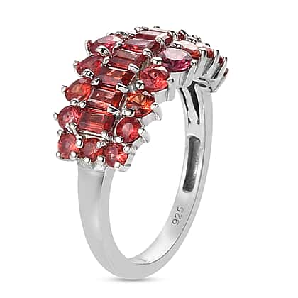 2.31 Ct Red Sapphire Cluster Ring in Platinum Plated Sterling Silver