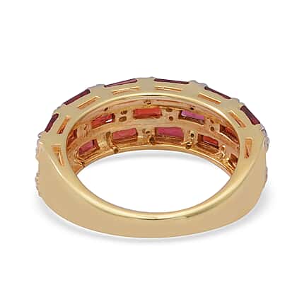 Red Sapphire & Natural Zircon Triple Row Ring in TwoTone Overlay Sterling Silver 2.64 Ct.