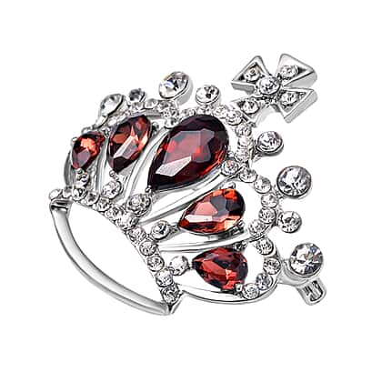Red & White Austrian Crystal Brooch in Silver Tone