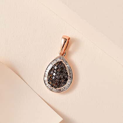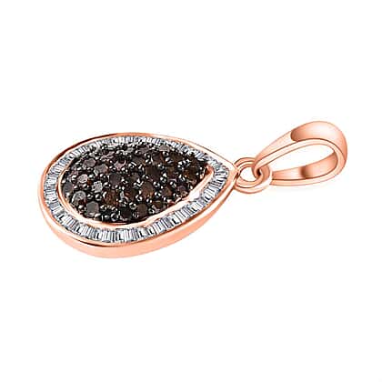 Red & White Diamond Teardrop Pendant in RG Vermeil Plated Sterling Silver 0.50 Ct.