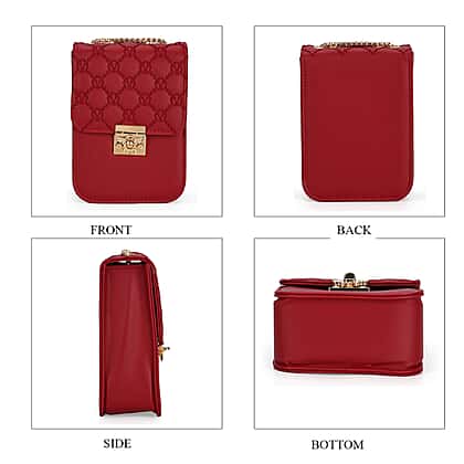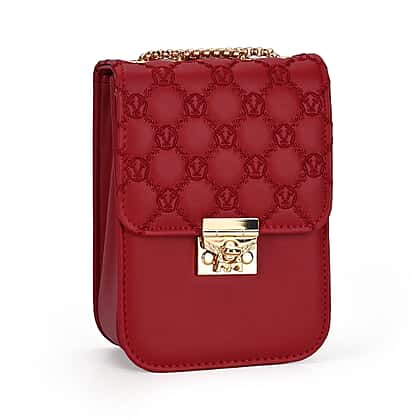 Turn heads with this bold red phone bag and clutch card holder duo, perfect for adding a pop of colour to your look. Designed with a stylish monogram quilted exterior, the crossbody bag secures your phone and small essentials with a lock closure and a sturdy 51-inch chain. The matching clutch keeps your cards organised across 10 internal slots, with added security from a zip and snap closure. A stunning combination of function and fashion, this set offers a standout style statement while staying compact and easy to carry for every outing.