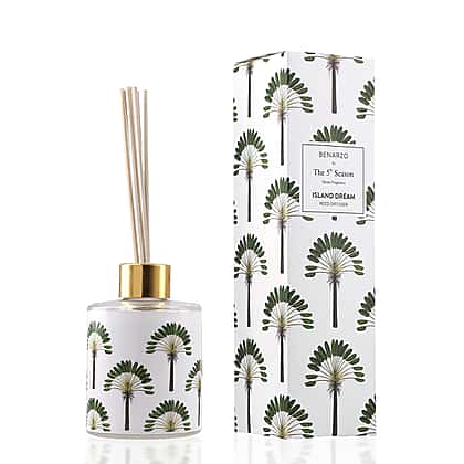 Transform your living space into a serene island paradise with our Island Dream Reed Diffuser in an Enamelled Glass Bottle with a Gold Cap. The soothing scent of tropical fruits and ocean breeze will instantly transport you to a tranquil oasis. The elegantly designed diffuser is a stunning addition to any decor, emanating a subtle yet alluring aroma. Experience the ultimate relaxation with the Island Dream Reed Diffuser, perfect for unwinding after a long day. Bring the essence of the tropics into your home and indulge in some island dreaming.