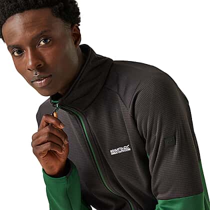 The Regatta Highton IV men's sweater is designed for outdoor adventures and casual wear. Made from polyester two-tone fleece, it offers a reliable outer layer that stands up to everyday use. Extol stretch panels provide enhanced movement, making it perfect for hiking, walking, or layering up on chilly days. The full-zip front with a high collar offers added warmth, while the stretch binding on the cuffs, hem, and collar helps keep out the cold. With a modern colour-block design and a comfortable fit, this fleece is both practical and stylish for any occasion.