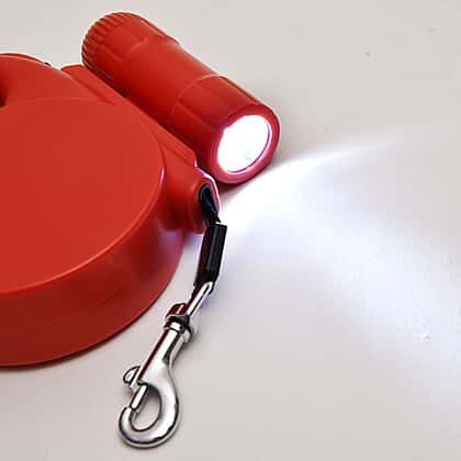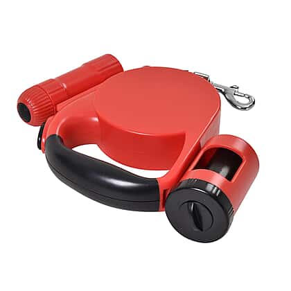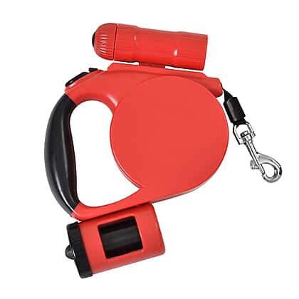 Retractable Lead Leash for Pets with Waste Bag Holder and LED Lights (Powered by 3xAAA Battery Not Inc.) – Red