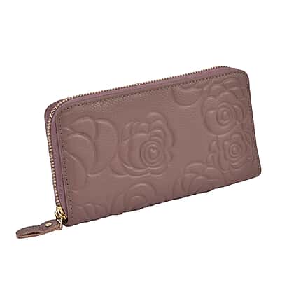 Closeout Deal - Genuine Leather Flower Embossed RFID Protected Wallet - Purple