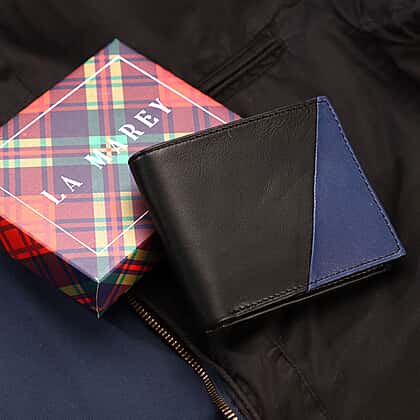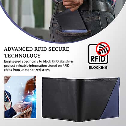 Genuine Leather Bi Fold Mens Zipper Wallet (RFID Protected) - Black & Navy