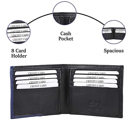Keep your cash and cards safe and in-trend style with this genuine leather men's wallet. This wallet is bi-folded and easily carried with your trousers. This spacious wallet has a cash pocket and 8 card holders, giving ample storage for essentials. Its lightweight craft is made with 100% leather and features a beautiful and reliable stretching with a charming colour combination. The RFID technology protects your cards from illegal scanning.