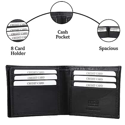 This genuine leather-textured men's wallet's sleek and elegant look will support your bold and outgoing personality. The professional look of this bi-folded wallet has a beautiful lizard skin texture made of 100% genuine leather. This spacious wallet has a cash pocket and 8 card holders, giving ample storage for essentials. The RFID technology protects your cards from illegal scanning. This wallet can be gifted to your father, brother, husband, or boyfriend.
