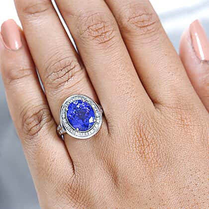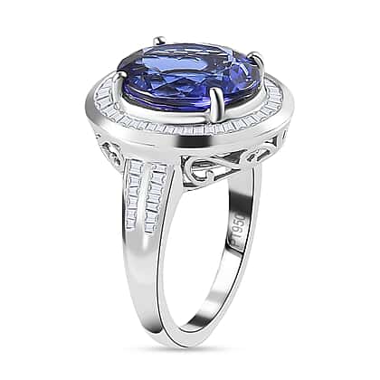RHAPSODY - 950 Platinum AAAA Intense Vivid Tanzanite & Diamond (VS-EF) Ring 5.52 Ct, Platinum Wt 8.65 GM