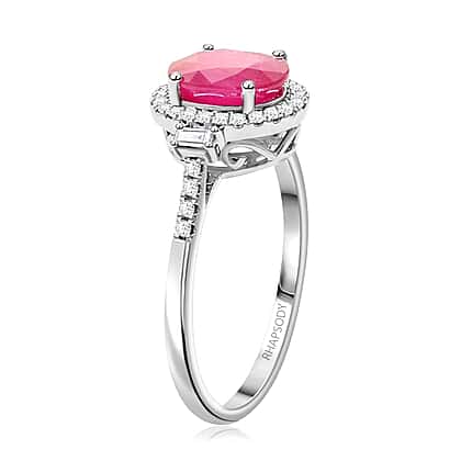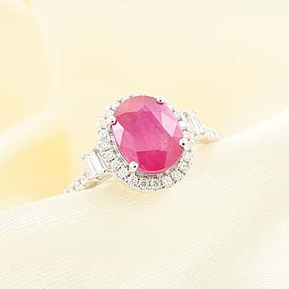 Appraised and Certified RHAPSODY 950 Platinum AAAA Mozambique Ruby White Diamond VS Halo Ring 2.49 Ct.
