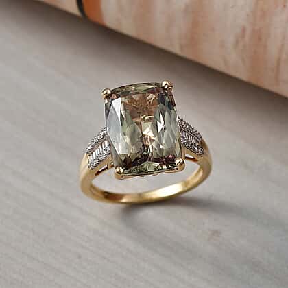 Rhapsody 18K Yellow Gold AAAA Turkizite & VS-E-F White Diamond Cushion Cut Solitaire Ring 10.05 Ct, Gold Wt. 4.60 Gms