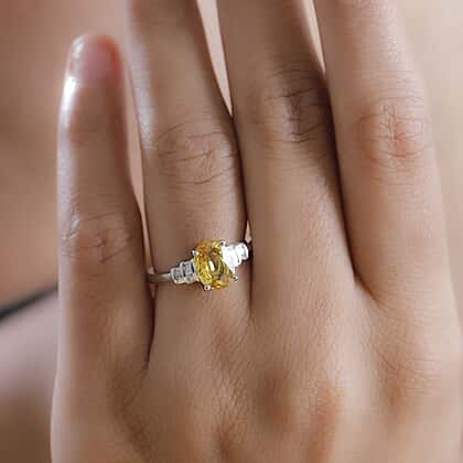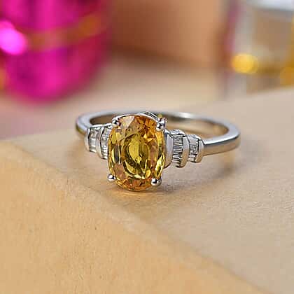 RHAPSODY 950 Platinum AAAA Chantaburi Yellow Sapphire with White Diamond (VS-EF) Ring 2.56 Ct,