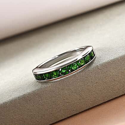 RHAPSODY 950 Platinum AAAA Chrome Diopside (Rnd) Half Eternity Band Ring 1.15 Ct, Platinum Wt 5.19 Gms