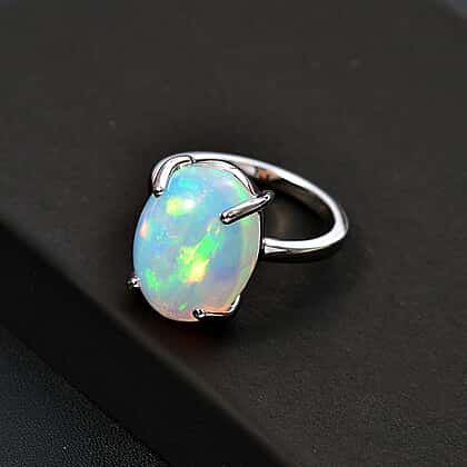 RHAPSODY 950 Platinum AAAA Ethiopian Opal Solitaire Ring 10.31 Ct pLAT wt - 6.55 gms