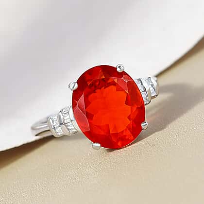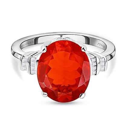 RHAPSODY 950 Platinum AAAA Jalisco Fire Opal and Diamond (VS-E-F) Ring 3.14 Ct, Platinum Wt. 6.02 Gms