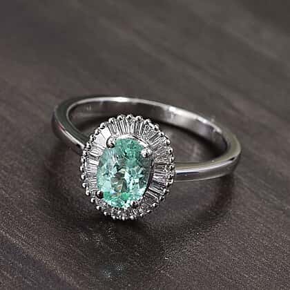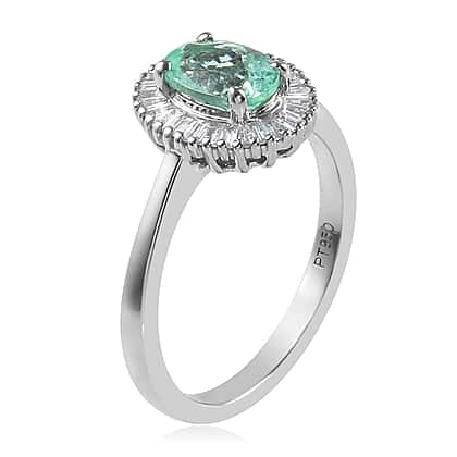 RHAPSODY 1 Carat AAAA Mozambique Paraiba Tourmaline and Diamond Halo Ring in Platinum VS EF