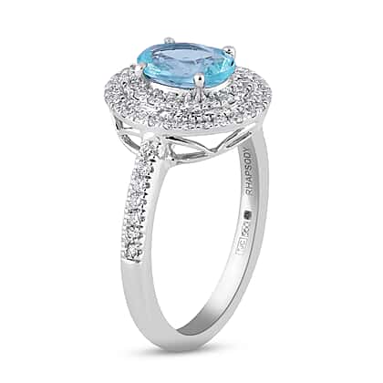 RHAPSODY 1.35 Ct. AAAA Paraiba Tourmaline and Diamond Halo Ring in 950 Platinum VS E-F
