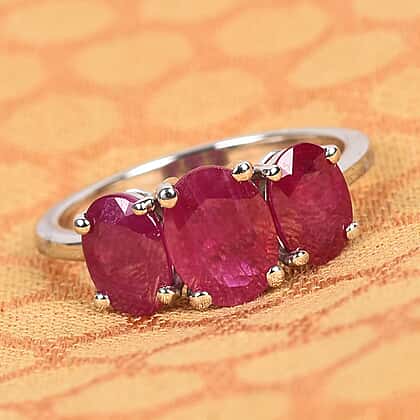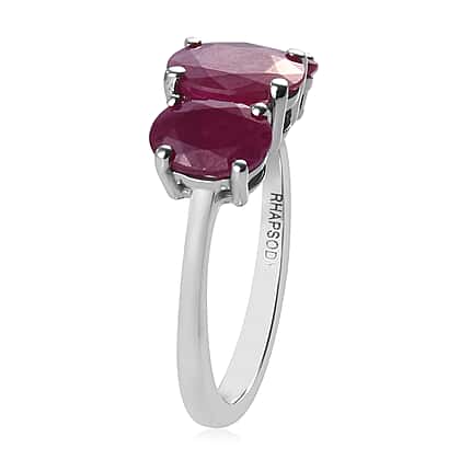 RHAPSODY 950 Platinum AAAA Ruby 3-Stone Ring 3.75 Ct, Platinum wt. 4.26 Gms