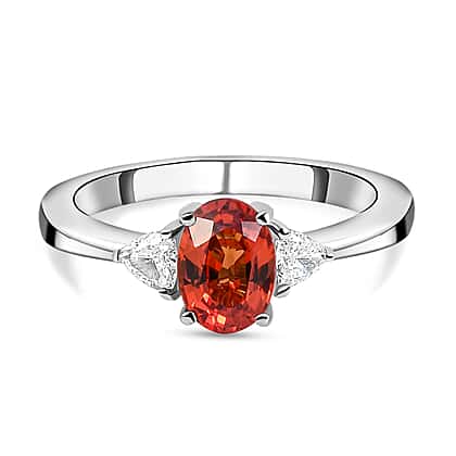 RHAPSODY 950 Platinum AAAA Songea Sapphire Trilogy Ring with VS/E-F Diamonds 1.10 Ct.