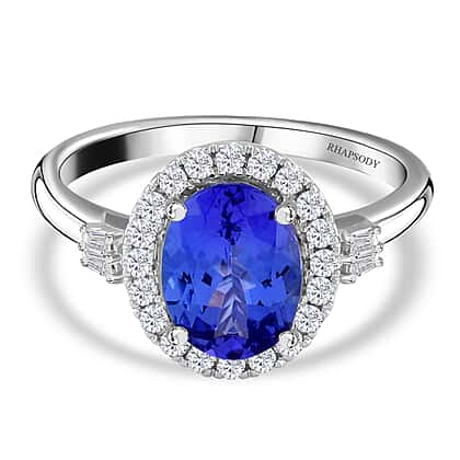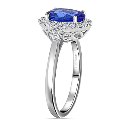 RHAPSODY 950 Platinum AAAA Tanzanite Halo Ring with VS/E-F White Diamond 2.35 Ct.