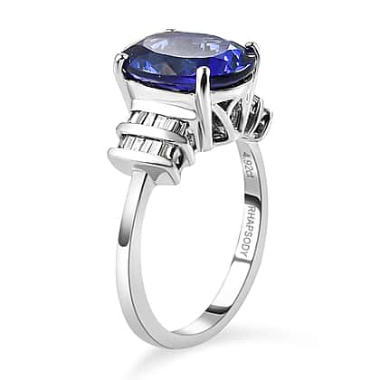 RHAPSODY 950 Platinum AAAA Tanzanite and Diamond (VS-E-F) Ring 3.47 Ct, Platinum Wt. 5.35 Gms