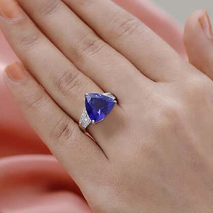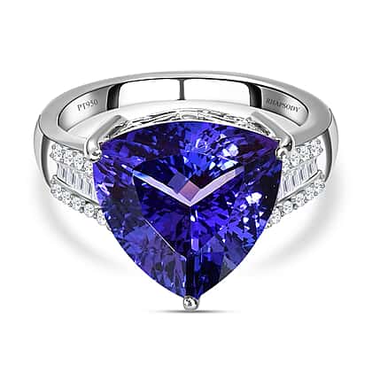 RHAPSODY 950 Platinum AAAA Tanzanite and (VS - E-F) Diamond Ring 7.10 Ct, Platinum Wt. 7.83 Gms