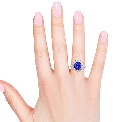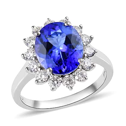 RHAPSODY 4.09 Ct AAAA Tanzanite and Diamond Halo Ring in 950 Platinum 5.80 Grams VS EF