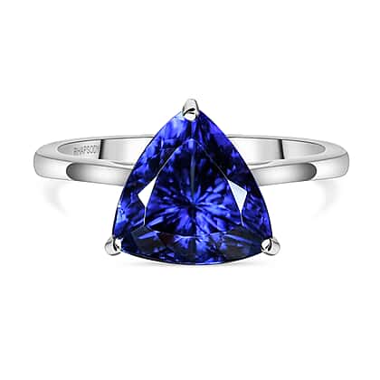 Add ecstasy to your attire with this premium tanzanite ring and flaunt its flair in each gathering. The superb clarity of the AAAA-graded tanzanite will attract all its admirers and make you the centre of attention. The trillian cut of the tanzanite is faceted to reflect its beautiful purple-violet hues. The cathedral shank, crafted in premium platinum, holds the gemstone like a crown and compliments the hues of tanzanite with its brightness. Add this to your precious jewellery collection and spread magic to each party.