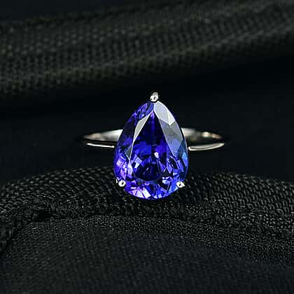 RHAPSODY 4.52 Ct. AAAA Tanzanite Pear Cut Solitaire Ring in 950 Platinum