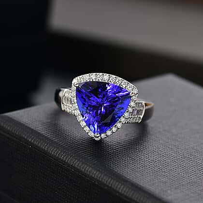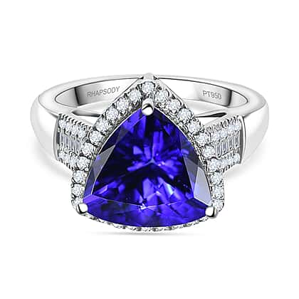 RHAPSODY 950 Platinum AAAA Tanzanite & White Diamond (VS-E-F) Trillion Ring 5.57 Ct.