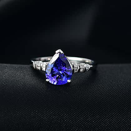 - Adorned with a pear-shaped 2.56 ct AAAA tanzanite at the centre