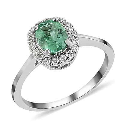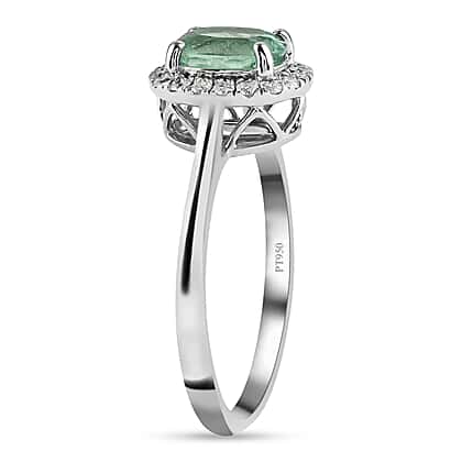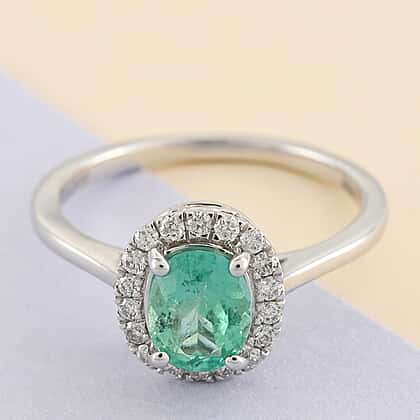 RHAPSODY 950 Platinum AAAA Boyacá Colombian Emerald Halo Ring with AGI Certified VS-E-F Diamond 1.40 Ct.