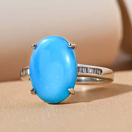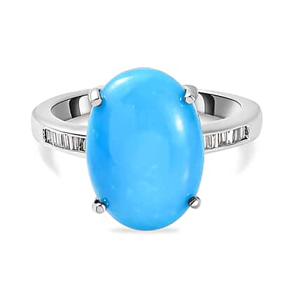 RHAPSODY 950 Platinum Arizona Sleeping Beauty Turquoise Solitaire Ring with Diamond 4.54Ct.