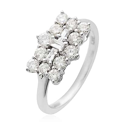 - 1 CARAT DIAMONDS - A stunning mix of baguette-cut and round-cut diamonds is arranged on the ring neatly