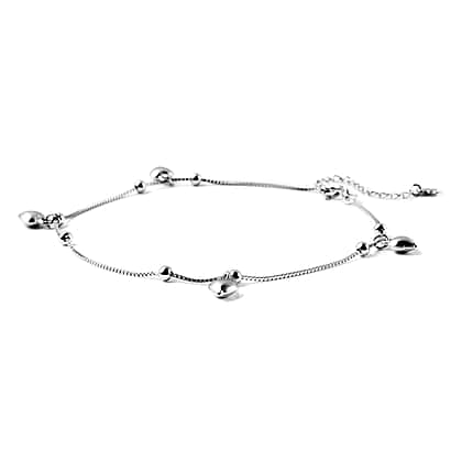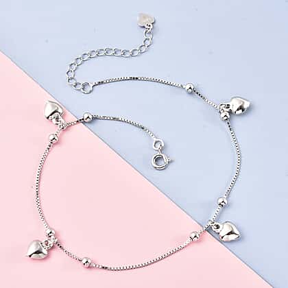 ELANZA Heart Charm Anklet Size 9 with 1.5 inch Extender in Rhodium Plated Sterling Silver