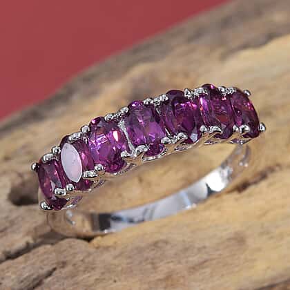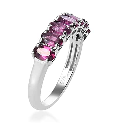 2 Ct Rhodolite Garnet 7 Stone Ring in Platinum Plated Sterling Silver