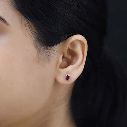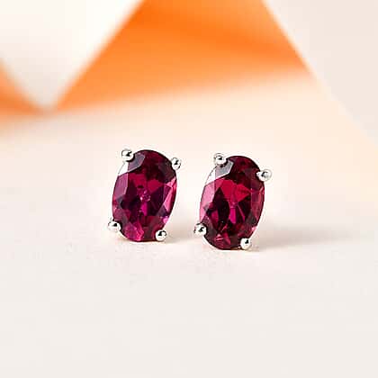 Rhodolite Garnet Stud Earrings in Platinum Overlay Sterling Silver 1.17 Ct