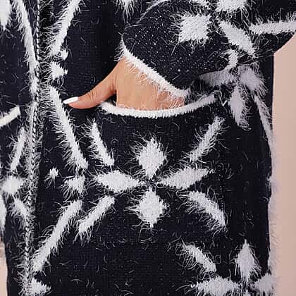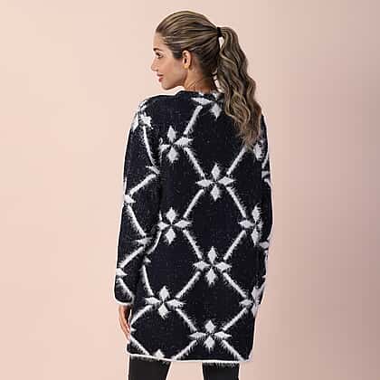 Rhombus Pattern Winter Coatigan with Two Pockets (Size 48in CB 33in - Size 8-20) - Navy